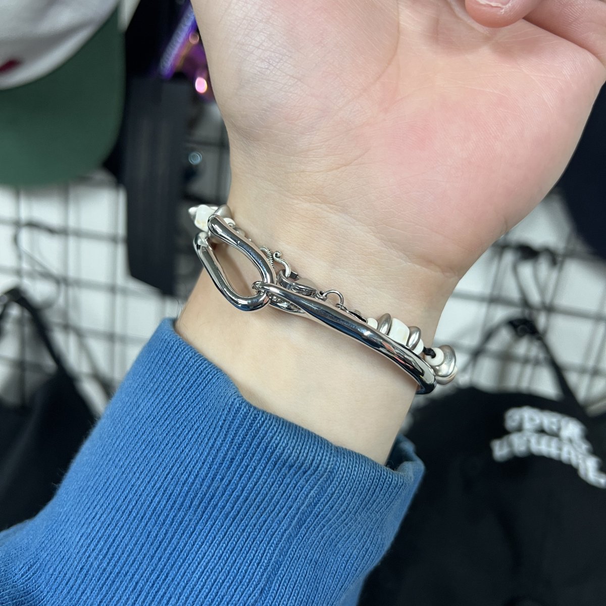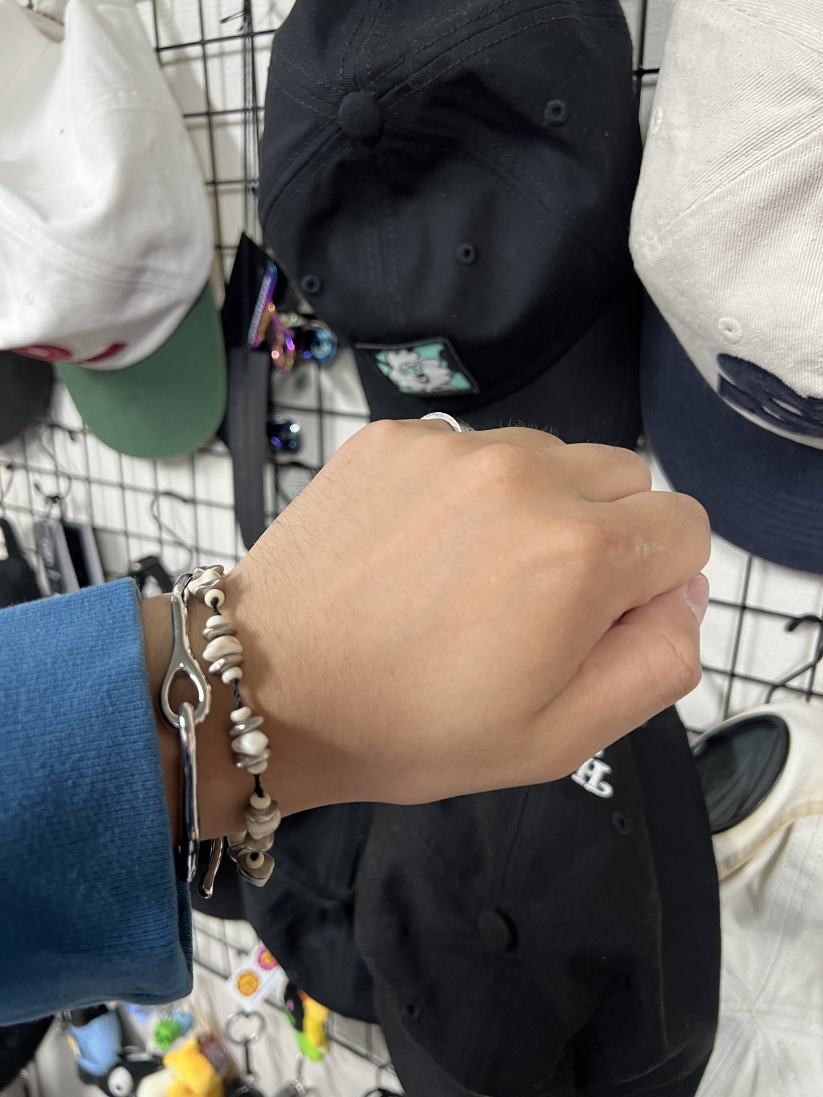 포장부터 너무 영롱한 팔쮜… 친구거랑 같이 해서 두개 왔는데 벌써 친구 언제 받으러 갈까 하면서 카톡온게 넘ㅁ 웃겼어여 ㅋㅎㅋㅋㅋ 팔목이 얇은편이 아니라 손도 안이쁘고 해서 여름엔 무조건 팔찌 하는데 다른 팔찌랑도 너무 착붙이라 앞으로 항상 하고 다닐거 같아오 위에서 보면 요런 느낌스 아래 두개는 팔찌 오기전에 유니클로에서 입어본건데 착샷 처음이라 한번 올려봐써요 감사합니다!!!